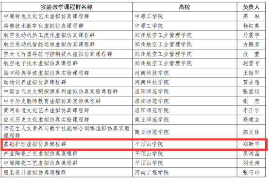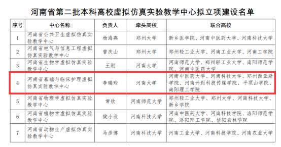 太阳成集团tyc122cc经理郑新华负责的《基础护理虚拟仿真课程群》立项建设河南省第二批本科高校虚拟仿真实验教学课程群。