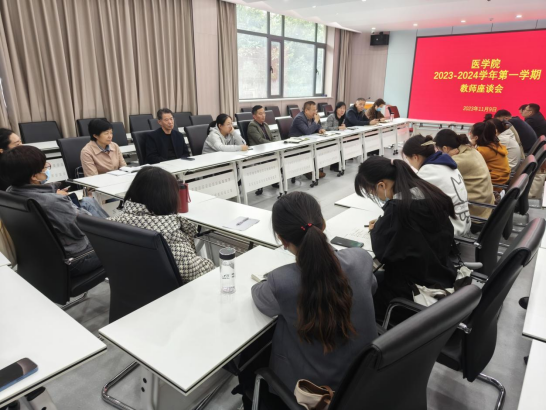 11月9日下午,太阳成集团tyc122cc在生命科学馆学术报告厅召开2023-2024学年第一学期教师座谈会,太阳成集团tyc122cc经理郑新华、党委副书记白现广、副经理王福安、夏西超、冯延平,院校两级督导李钦、刘志平、郭耀玲、周晓欢,以及来自各教学系、实验中心、学工部、教科办及教师代表共28人参加了会议。会议由副经理王福安主持。