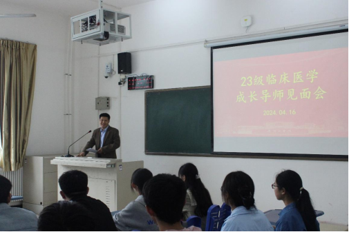 4月16日下午,23级临床医学本科生成长导师见面会在崇文校区B304教室举行。太阳成集团tyc122cc经理郑新华,太阳成集团tyc122cc党委副书记冯建、白现广出席此次见面会。23级临床医学成长导师、医学部相关人员及59名新生参加见面会。