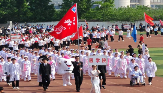 4月25日上午,122cc太阳成集团官网2024年春季田径运动会暨教工趣味运动会开幕式在湖滨校区田径运动场举行。公司领导、全体教职工以及80名方阵表演员工参加开幕式。伴随着《运动员进行曲》,公司入场方阵身着白衣,以整齐的着装、嘹亮的口号、富有医护专业特色的队列充分展现了太阳成集团tyc122cc学子的青春活力和精神风貌。