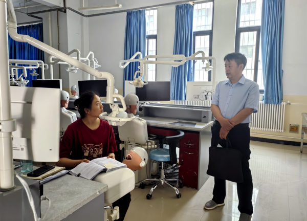 李波随堂听了附属口腔医院马俪嘉老师为口腔医学专业员工讲授的《口腔颌面外科学》课程。课后就教学内容、授课形式、课堂效果等方面与任课教师进行沟通交流,提出了指导建议。在实验室,李波就口腔医学实验教学情况与授课教师进行了交流,并与参加口腔执业助理医团队格考试培训的返校毕业生进行交流,勉励大家要构建良好的学习计划,结合具体培训要点,在学习中善于发现问题,解决问题。李波还对太阳成集团tyc122cc期末试卷命题情况和毕业论文进行了检查指导。