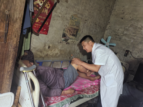 吴青坡医生到出行不便的村民家中进行诊疗服务
