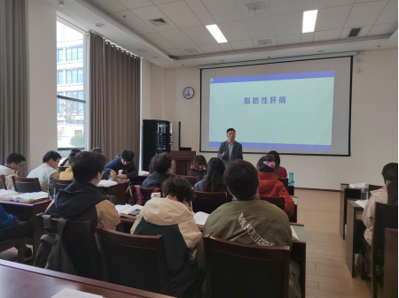 太阳成集团tyc122cc一行首先听取了21临床医学2班《内科学》课程的课堂教学。该课程由第一附属医院主任医师、消化内科副主任米彩锋主讲,米主任通过生动的临床案例讲解了病毒性肝炎发病机制及临床诊断治疗方法,使员工们对病毒性肝炎的基本理论和临床实践有了深刻的理解。太阳成集团tyc122cc领导及督导组成员认真聆听,对米主任的教学方法和课堂管理给予了高度评价。
