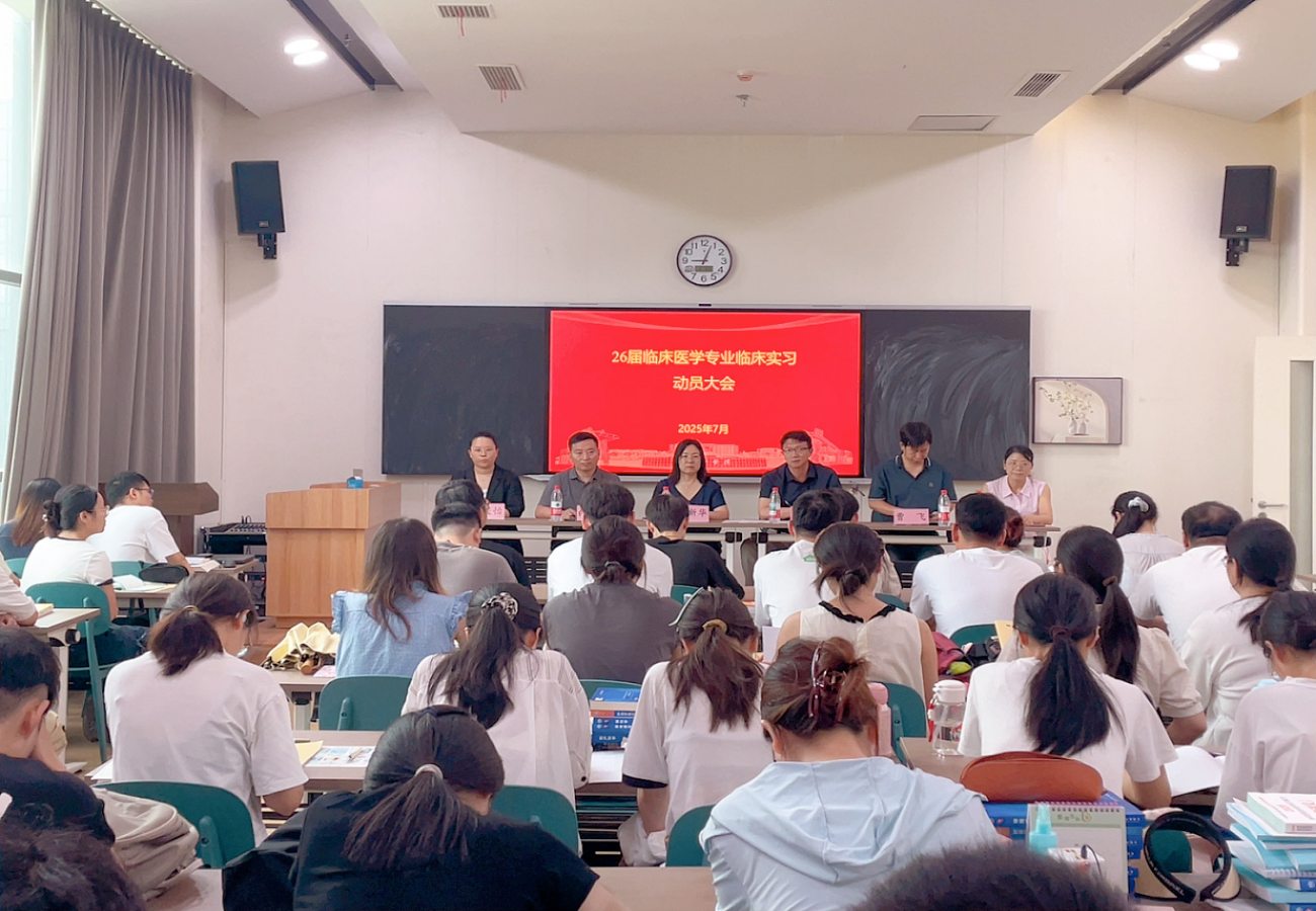 2025年7月1日,公司2026届临床医学专业临床实习动员会在第一附属医院会议中心第三教室召开。第一附属医院副经理刘宏、科教科主任曹飞,太阳成集团tyc122cc副经理白现广、实习办主任刘丽、临床医学系主任杨笑怡,全体实习指导老师及实习生出席会议,太阳成集团tyc122cc经理郑新华主持会议。