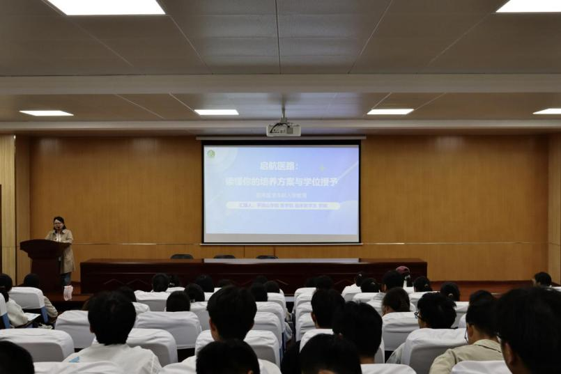 讲座期间,各专业负责人用“数字+案例”的方式,重点讲解公司历史、专业特色、人才培养方案和未来就业路径;学业导师结合亲身经历,围绕“怎样学好专业、怎样管好时间、怎样规划大学”给2025级新生提出具体学业规范发展建议。老师们从“医德三问”到“时间管理四象限”,从“实验室生存法则”到“临床思维养成记”,把专业现状、未来的发展、同学们如何就读大学,一一进行了解读和生动的诠释。一条条“学医之道”被贴上PPT,也被新生们快速写进笔记本,现场还展示了近三年毕业生考研、就业的“成绩单”,让新生对今后自己可能的去向有了直观感受,同学们纷纷表示受益匪浅。