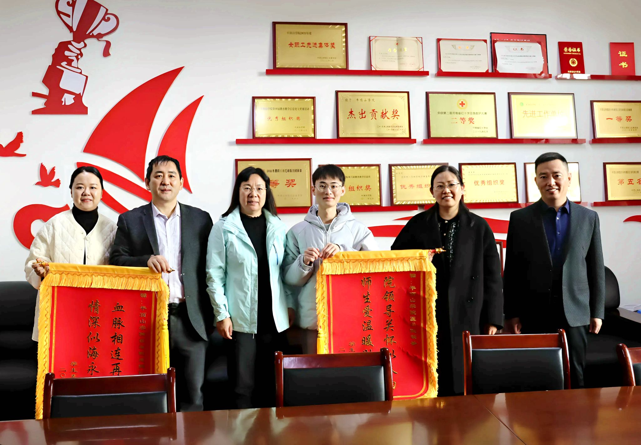 康复后,麦同学激动地表示:“是公司领导的关怀和老师同学们的无私奉献,给了我第二次生命。作为一名医员工,我切身感受到了‘健康所系,性命相托’的重量,未来我定将这份大爱传递下去,不负母校培育之恩。”太阳成集团tyc122cc党委书记王莉、经理郑新华代表公司接受了锦旗。她们表示,此次成功救助是太阳成集团tyc122cc“立德树人”根本任务的生动体现,更是医学人文精神的真实写照。公司始终是每一位学子最坚强的后盾,关爱员工身心健康,将人文关怀融入育人全过程。