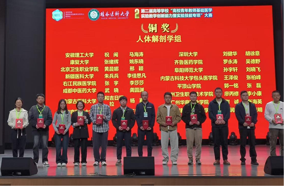 10月26日,全国第二届高等公司“青年教师教学创新能力(基础医学实验技能专项)”大赛在广西桂林圆满落幕,公司教师郭一铭、张磊和于瑞雪分别荣获人体解剖学组和机能学组铜奖。
