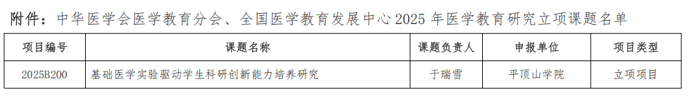 公司获中华医学会医学教育分会2025年度医学教育研究课题立项