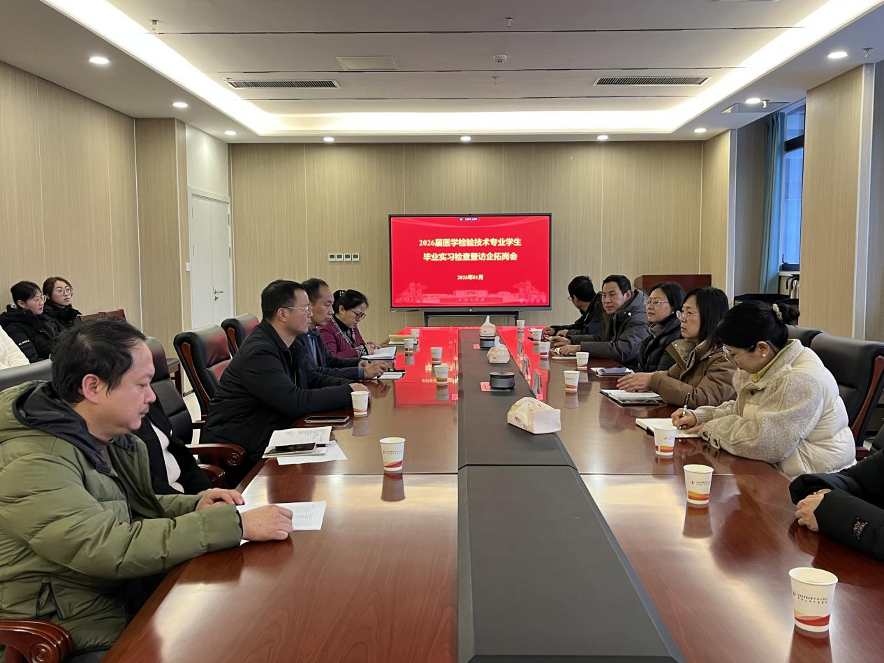 1 月 30 日下午,党委书记王莉、经理郑新华带队前往上海中医药大学平顶山市中医医院,组织师生与实习单位座谈,倾听医学检验技术专业员工实习感悟、了解其工作生活困难,并结合行业趋势开展就业规划指导,同步推进实习关怀与访企拓岗工作。