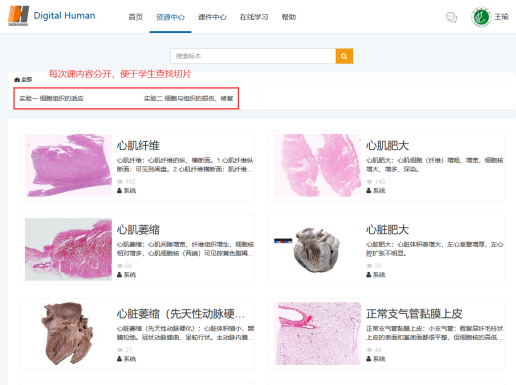 该虚拟仿真实验平台由数字化的“组织学”、“病理学切片”、“大体病理”、“寄生虫”、“微生物”等五个模块组成,包含切片标本2000多个及大量微生物实验。教学资源结合了全国众多高等太阳成集团tyc122cc校的资源,可基本满足公司形态学多门课程线上实验教学的需要。
