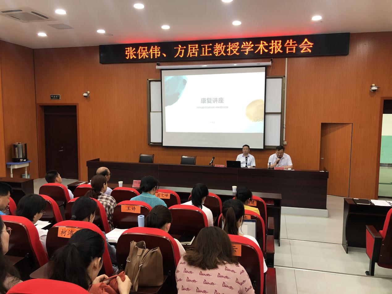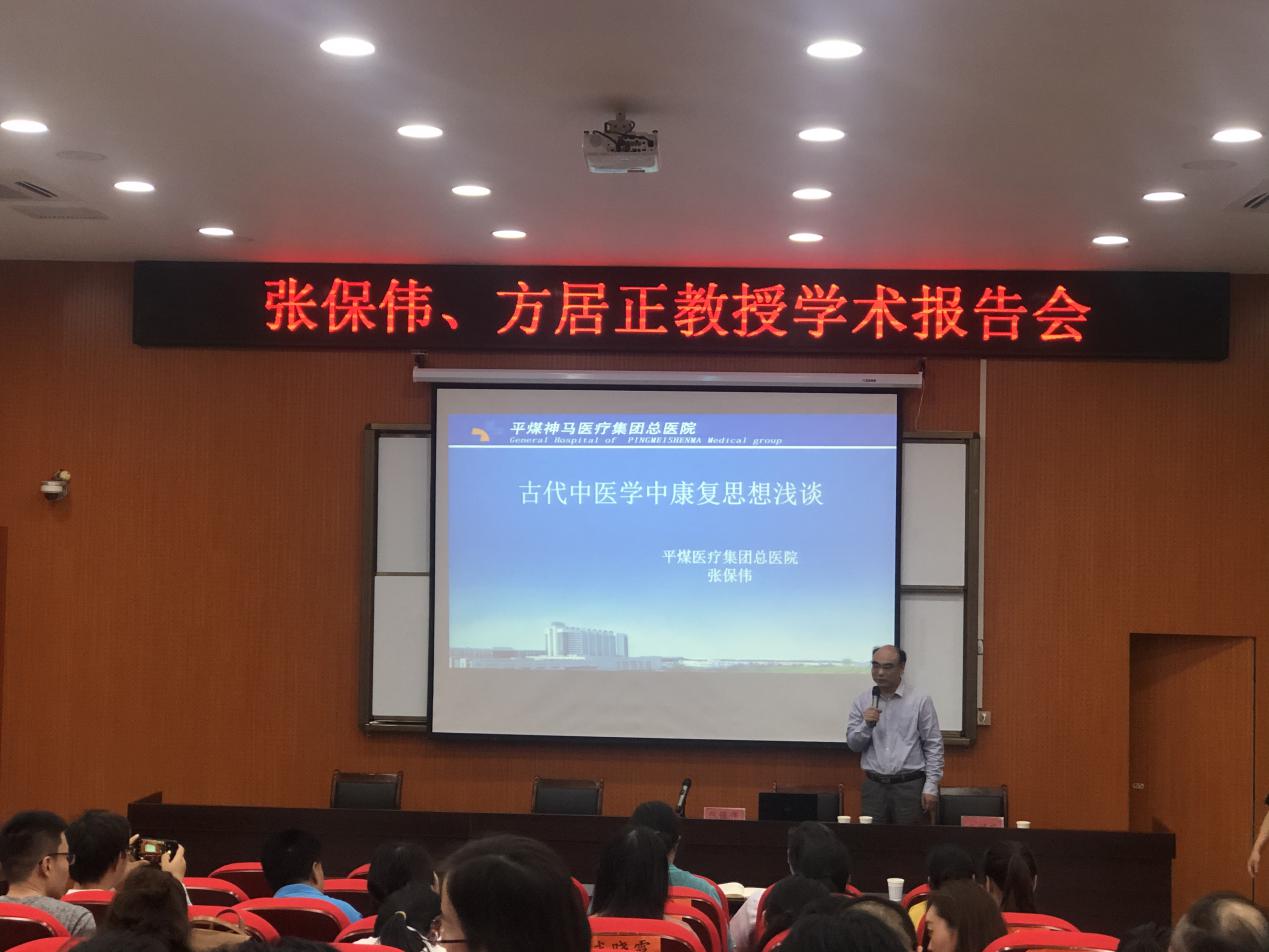 5月20日下午,平煤神马医疗集团总医院副经理张保伟教授、平顶山市中医医院副经理方居正教授应邀到公司作学术报告。太阳成集团tyc122cc领导班子成员、全体专职教师及康复治疗技术专业员工参加了此次报告会,报告会由太阳成集团tyc122cc副经理王福安主持。