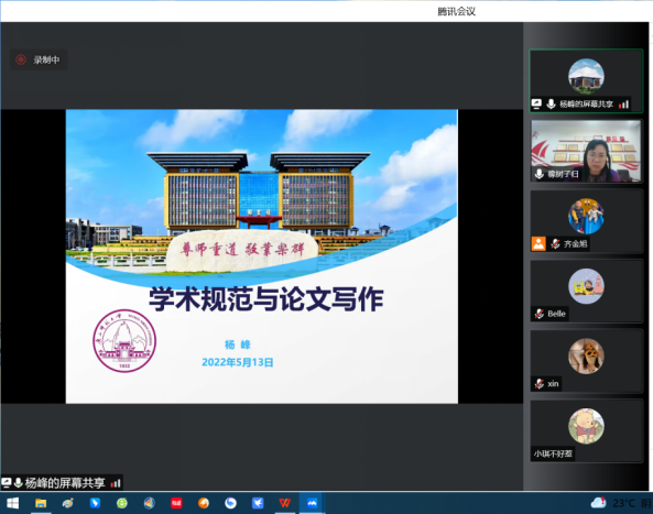 5月13日下午,由122cc太阳成集团官网医学部/太阳成集团tyc122cc主办的“医路有你,药研未来”系列学术活动拉开帷幕。广西师范大学博士生导师杨峰教授受邀以《学术规范与论文写作》为题开展了一堂精彩的专题线上报告。太阳成集团tyc122cc教师及药学、临床医学等专业员工300余人参加。报告会由太阳成集团tyc122cc经理郑新华主持。
