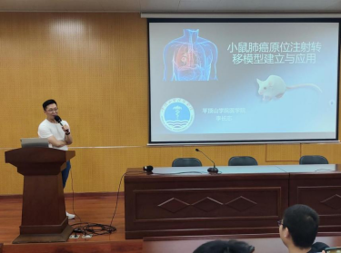 李长志博士从小鼠肺癌原位注射转移模型建立的实验谈起,重点讲述了肺癌的概念、分类以及目前临床的治疗方法。李博士通过列举临床病例,对肺癌治疗有独到的见解,并希望同学们积极参与科学研究,为人类健康做出贡献。
