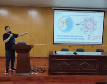 郑亚龙博士的以“世界癌症的发病率和死亡率”为主题,详细讲述了荧光探针和诊疗前药的相关知识。最后,郑博士向大家分享了一些有效的学习经验,鼓励同学们继续考研深造,并对同学们提出的问题进行了解答。