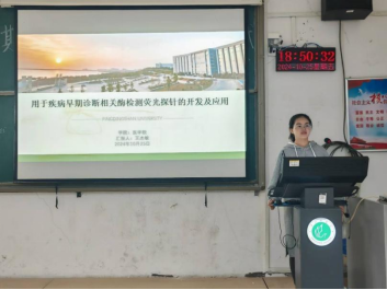 王杰敏博士以《用于疾病早期诊断相关酶检测的荧光探针的开发及应用》为题,详细解释了荧光传感器与酶激活荧光探针的工作原理,并突显了这些先进技术在促进基础生物学与医学研究方面的重要作用,及其在临床实践中改善癌症诊疗效果的巨大潜力。此外,王博士还分享了她关于准备研究生入学考试的学习方法、备考重点以及如何选择合适院校的见解,鼓舞在座的员工们继续求学深造,追求卓越的学术成就。