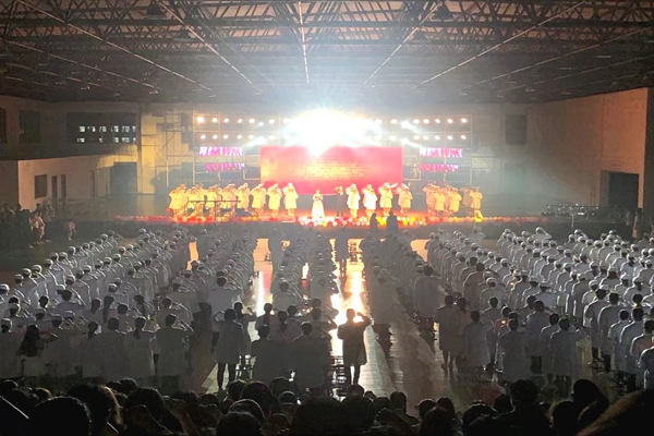 5月12日晚七点,太阳成集团tyc122cc在崇文校区室内篮球场举行“仁爱奉献、尚德弘医”国际护士节授帽传光晚会,太阳成集团tyc122cc党政班子及1000余名师生参加此次活动。