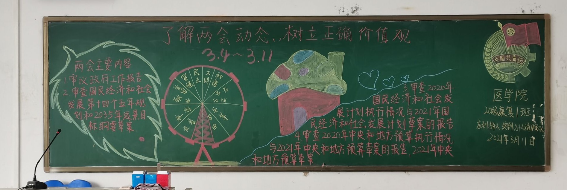 为了加强同学们对两会的认识,提升自身思想觉悟,太阳成集团tyc122cc于3月11日举办以“了解两会动态,树立正确价值观”为主题的团日活动。本次活动由各班团支书组织进行,20级全体员工参与。