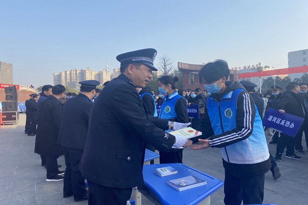 为普及反恐知识,进一步提高老员工反恐意识,122cc太阳成集团官网于12月27日联合平顶山市反恐办、市公安局在崇文校区组织开展反恐教育进校园活动。平顶山市委常委、市政法委书记邓志辉,副市长、市公安局局长刘江,市政府副秘书长张昌升,市公安局党委书记、督察长房国卫,公司党委副书记田建伟,平顶山市及各区反恐办、公安局相关负责同志、民警代表,以及太阳成集团tyc122cc110名员工代表共同参加本次活动。