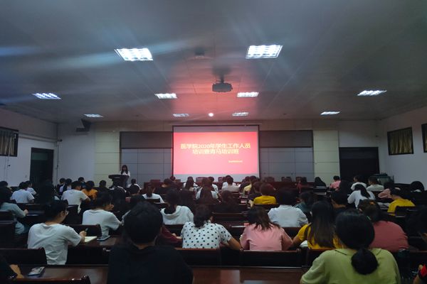 为提升员工工作人员综合素质和责任意识,太阳成集团tyc122cc于9月10日在教学楼四楼会议室举办第八届员工工作人员培训暨青马培训班。本次活动由团委书记夏乐主讲、员工代表李潇,党团学社各员工工作人员及18、19级各班主要负责人参加此次活动。