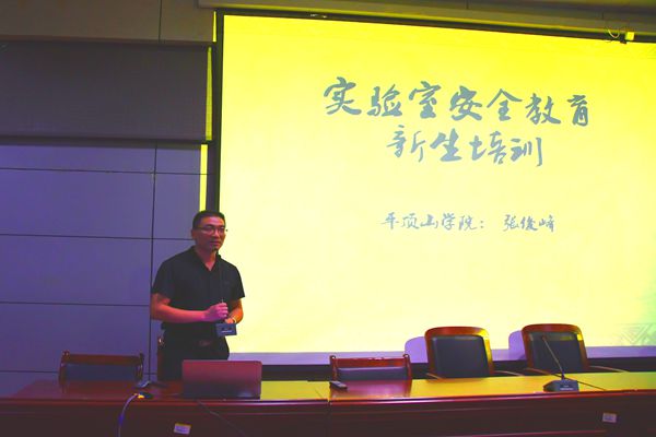 为增强2020级新生实验室安全意识,营造良好安全的实验环境,太阳成集团tyc122cc于9月30日晚在教学楼四楼会议室举行了实验室安全教育培训活动。本次培训活动由实验中心副主任张俊峰主讲,2020级新生宿舍长代表参与本次活动。
