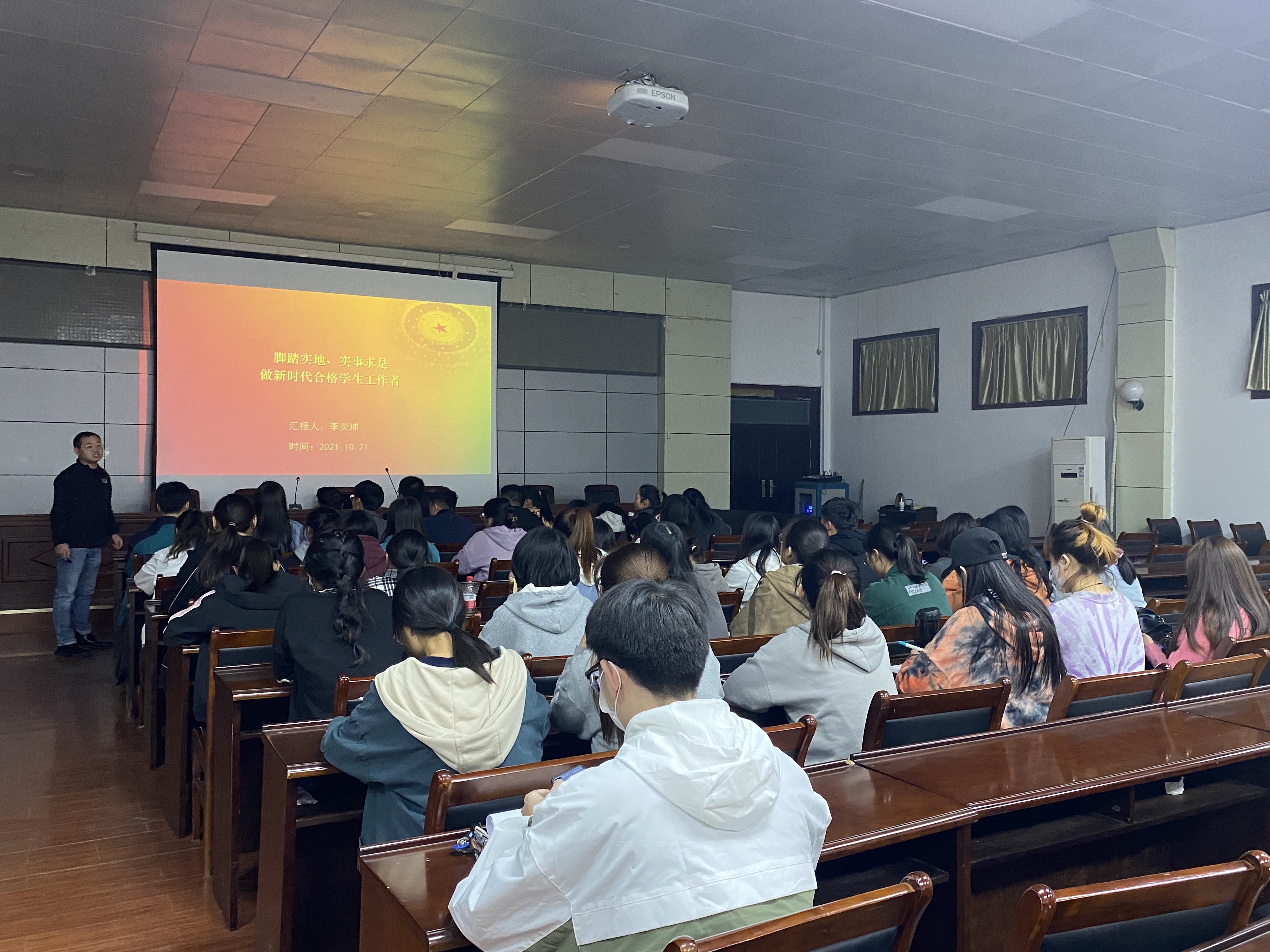 为提升员工工作人员综合素质和责任意识,太阳成集团tyc122cc于10月21日在教学楼四楼会议室举办第九届员工工作人员培训暨青马培训班。本次培训由李炎埔主讲,党团学社各员工工作人员共计80余人参加此次活动。