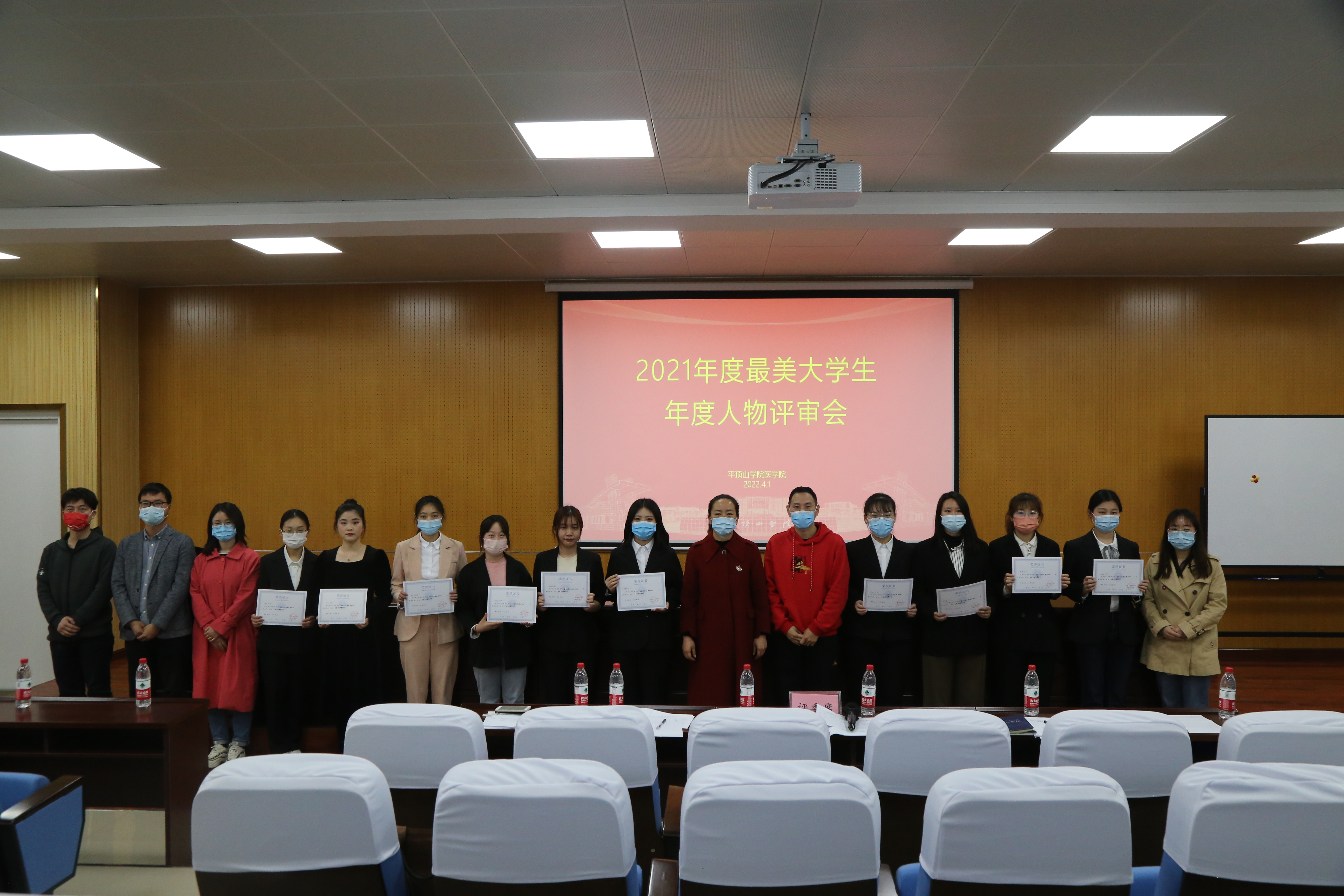 演讲评审中,参赛选手利用PPT,分享了自己的事迹故事,展示了同学们在勤奋学习、自强不息、假期抗疫、征兵入伍期间的优秀经历和优良风貌。活动最后党委副书记冯建对本次活动进行了点评总结,她肯定了同学们的成绩,并勉励大家继续把小我融入大我,用自己的经历影响带动身边更多的医学学子一起奋斗。最终,陈梦瑶、王晓曼、靳雅鑫、于晶晶、张怡敏、狄小文、周浩月、陈柯、杨子越、郭娜十名同学荣获最美老员工称号。