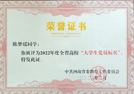 3月3日下午,全省高校“老员工党员标兵”评审结果公示,公司学子陈梦瑶荣获河南省“老员工党员标兵”荣誉称号。