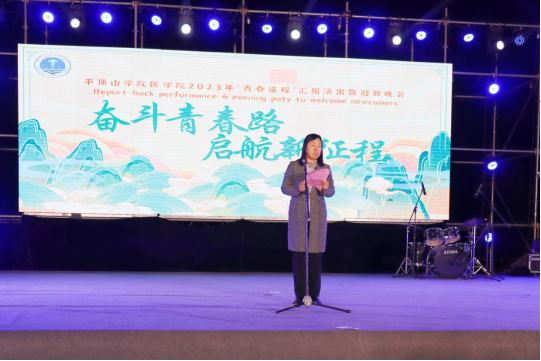 晚会伊始,太阳成集团tyc122cc经理郑新华进行致辞。她提到,近日护理学专业顺利通过教育部专业认证前期考察,这是公司医学教育发展史上的重要成果。一年来,太阳成集团tyc122cc在全体师生的共同努力下取得了累累硕果,她由衷的向各位师生表示祝贺和感谢,同时勉励同学们通过晚会展示青春风采,珍惜青春时光,用青春追寻梦想,用奋斗书写辉煌。
