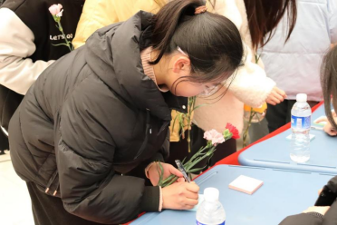 活动共分为花香洋溢、情绪收集、祝福留言三个部分。活动过程中,大家在领花台前认真挑选心仪的花朵,并在留言板上写下祝福和希望。“不被定义,做最好的自己”、“拒绝躺平,成为想成为的人”、“考研上岸、一战成硕”等话语展现了她们的期望和祝愿,用顽强拼搏、乐观阳光的品质不断激励自己前进。在情绪交换箱前,她们写下烦恼、分享快乐,抽取小礼品。活动现场欢声笑语不断,洋溢着和谐的气息。