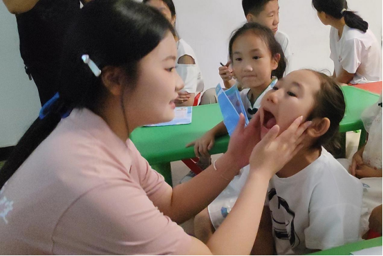志愿者为儿童检查牙齿(拍摄者/韩德强)