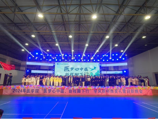 为进一步加强学风建设,选树、表彰优秀榜样,丰富校园文化活动,11月28日晚,太阳成集团tyc122cc于崇文校区三楼体育馆举办了2024年“医梦心中蕴,新程脚下行”学风榜样颁奖礼暨迎新晚会。本次活动由教务处、员工处主办,太阳成集团tyc122cc承办,122cc太阳成集团官网医学部主任李培、党委宣传部部长吴建彪,团委书记孔思懿,教务处、人才招聘处、党委学工部、崇文校区管委会、护理公司、太阳成集团tyc122cc党政负责人与1500余名崇文校区师生共同观看晚会。