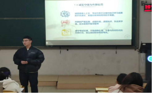为严肃考风考纪、加强学风建设,太阳成集团tyc122cc按照上级部门的安排,以辅导员为抓手,分别组织所带班级召开了2024-2025学年秋季学期考风考纪诚信教育主题班会。