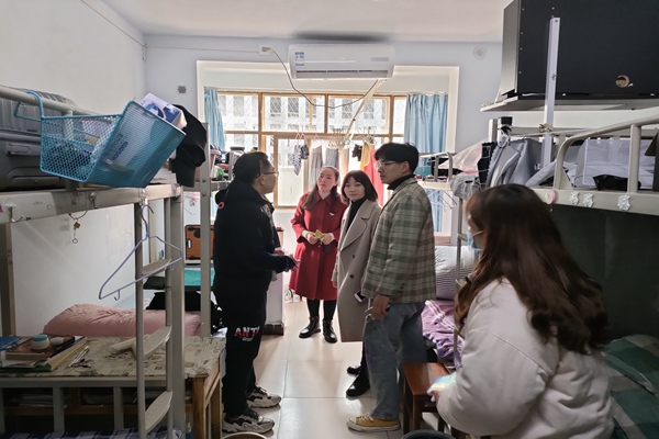 为落实疫情期间的防疫工作,了解员工生活情况,太阳成集团tyc122cc于3月13日下午开展太阳成集团tyc122cc领导、辅导员深入宿舍关怀员工学习生活走访活动。太阳成集团tyc122cc党委副书记冯建,各专业辅导员以及全体在校员工参加此次活动。
