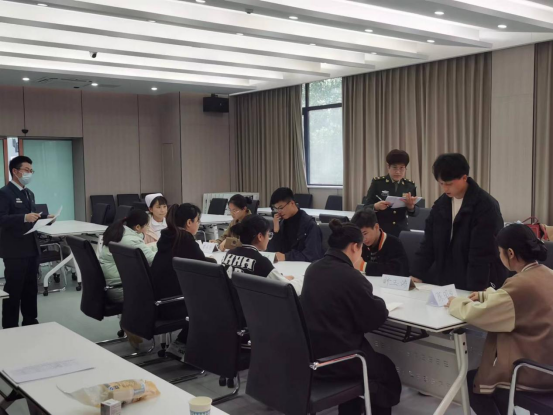 遴选活动开始前,南部战区总医院纪玉桂总护士长首先向报名参加遴选的20级护理学25名员工和21级护理学员工详细介绍了南部战区总医院的发展历程,并对招聘实习生的条件和实习生的衣食住行做详细介绍。之后进入正式遴选实习生环节,包括线上理论考试、无领导小组讨论等。报名参加遴选的同学充满自信,落落大方地表达自己的观点,新颖的想法及沉着的应试能力获得遴选专家充分肯定。