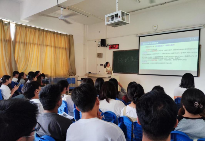 医学技术系王慧君老师以不同层次考研院校为例,从考试范围和难度两方面,讲解如何选择院校和专业,并强调正确填报志愿的重要性;医学技术系四位老师一一分享自身考研心得,详细介绍了英语、思想政治以及专业课的复习方法,以期帮助同学们在复习过程中能“事半功倍”,同时特别提醒同学们在备考中一定要立足真题、多做练习、把握大纲、回归课本,以求有效提高分数。