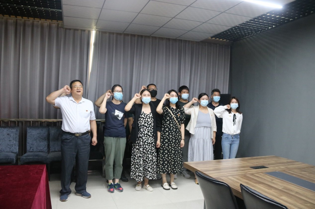 最后,全体党员同志在党旗下重温了入党誓词。面对庄严的党旗,大家郑重地举起右拳,心怀敬意地朗诵誓词,铿锵有力的声音响彻大厅。