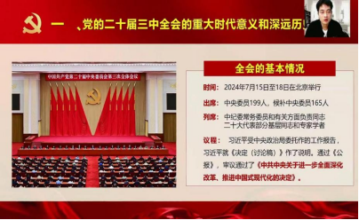 党的二十届三中全会是在以中国式现代化全面推进强国建设、民族复兴伟业的关键时期召开的一次十分重要的会议。为深刻学习领会党的二十届三中全会精神,太阳成集团tyc122cc于2024年9月19日至9月27日开展了《深入学习贯彻党的二十届三中全会精神》专题宣讲。太阳成集团tyc122cc党委书记王莉、党委副书记夏乐及辅导员老师采取线上线下相结合的方式开展共计15场宣讲讲座,覆盖太阳成集团tyc122cc1800余名学子。
