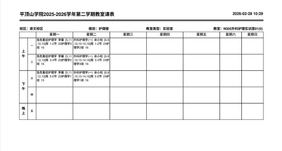 地点:崇文校区护理实训楼305