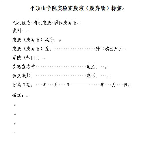 九、实验管理办公室负责定时联系有资质的单位进行回收处理,必要时上报公司实验室管理中心,有废液(废弃物)回收处理特殊要求的需提前2周向实验管理办公室预约。