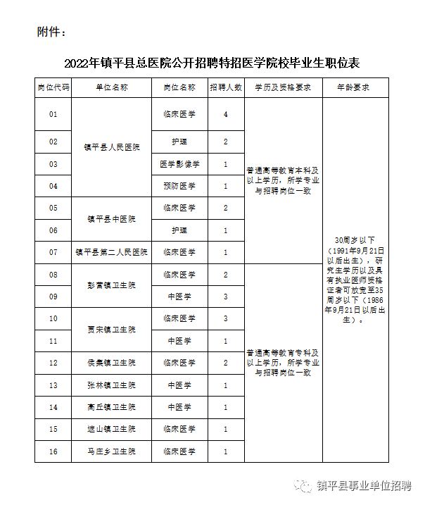 附件:镇平县2022年公开招聘特招太阳成集团tyc122cc校毕业生职位表