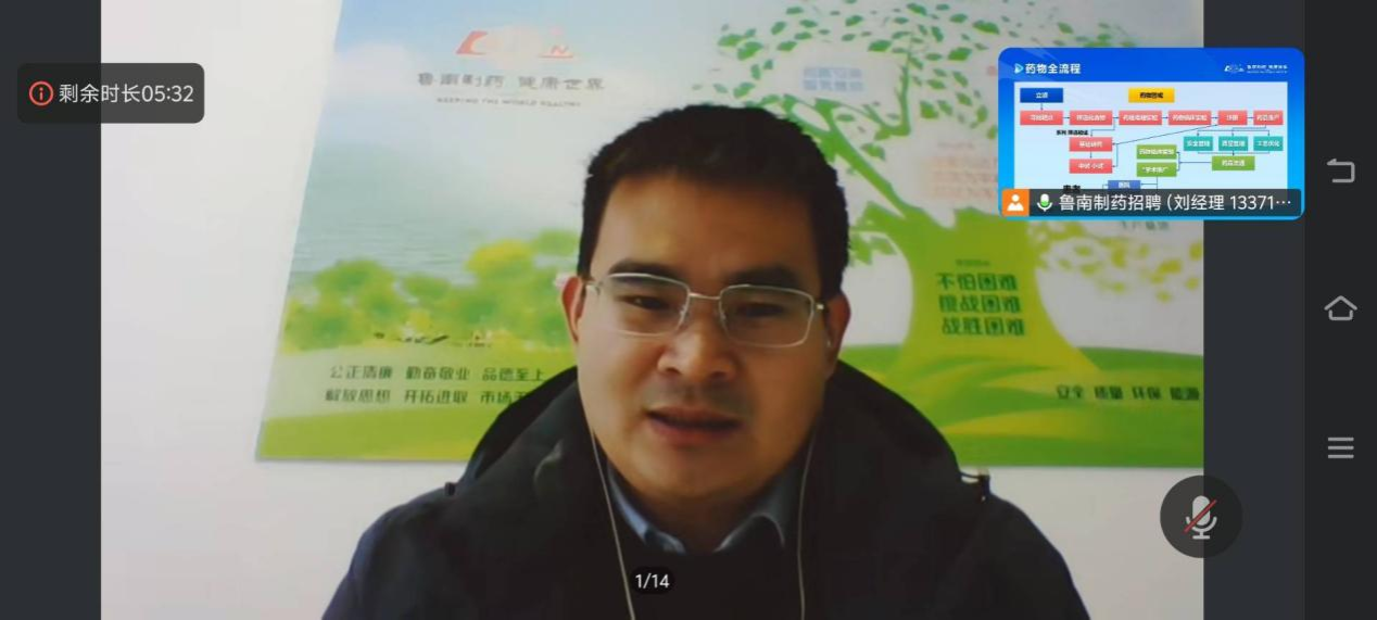 本次线上宣讲会不仅为公司学子搭建了高效的就业对接平台,也为鲁南制药集团引进优秀医药人才注入了新的活力。期待未来校企双方能进一步深化合作,共同推进人才培养与企业发展的互利共赢。